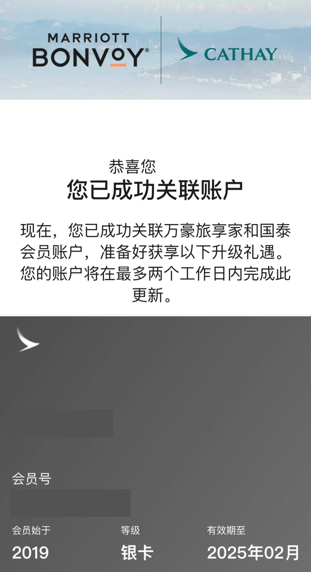 跟新航金卡匹配万豪的挑战活动一模一样,再加上阿里系,目前10晚以下就可以达成白金的挑战渠道已经有5个(中信6800的万豪卡大佬,请当我没说)。所以考虑到国泰银卡的难度,这部分匹配的价值并不高。