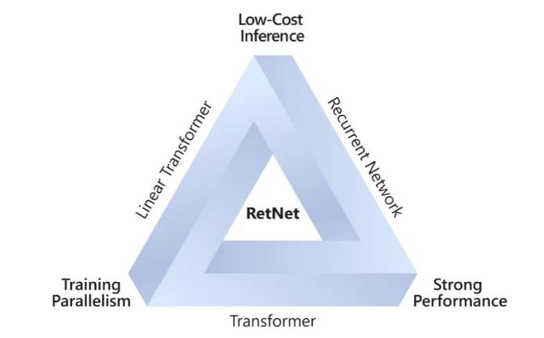 而近期,我们推出的一种新型基础网络架构 Retentive Network(RetNet),成功突破了所谓的「不可能三角」难题,实现了帕累托(Pareto)优化。也就是说,RetNet 在保持良好的扩展性能和并行训练的同时,实现了低成本部署和高效率推理。我们的实验还证实,RetNet 的推理成本与模型序列长度无关,这表示无论是处理长文本序列,还是长图像序列,亦或是未来更长的音视频序列,RetNet 都可以保持稳定的高效推理。这些优势让 RetNet 成为继 Transformer 之后大语言模型网络架构的有力继承者。