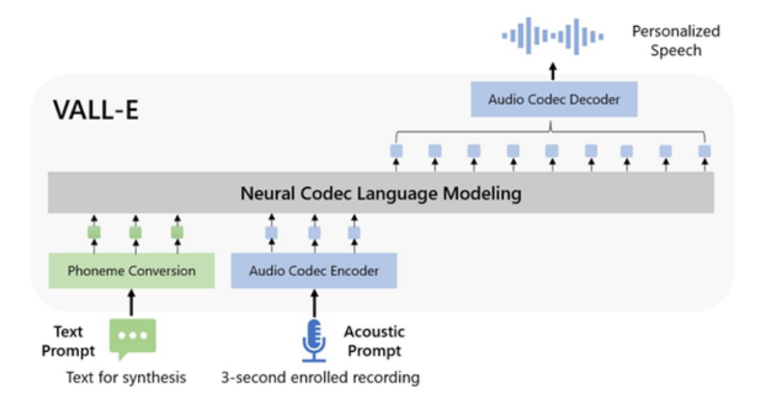 此外,语音无疑是未来多模态大语言模型的核心能力之一。因此,我们还推出了语音多模态大语言模型 VALL-E,并支持零样本文本的语音合成。只需短短三秒的语音提示样本,VALL-E 就能将输入的文本用与输入的提示语音相似的声音朗读出来。与传统的非基于回归任务训练的语音模型不同,VALL-E 是直接基于语言模型训练而成的。通过直接将语音合成转化为一个语言模型任务,这一探索进一步加强了语言和语音两种模态的融合。