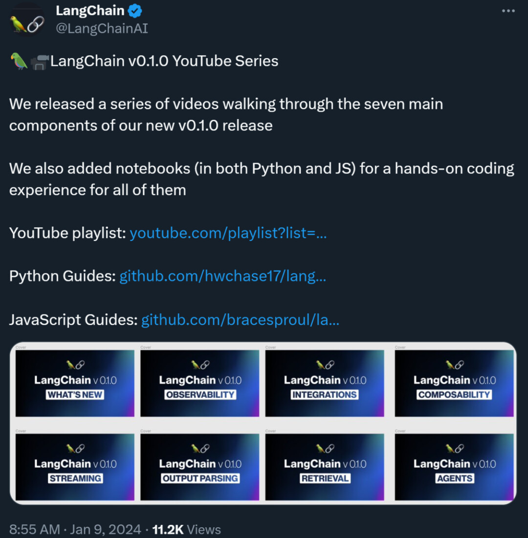 LangChain 官方还发布了一系列视频来介绍新功能。