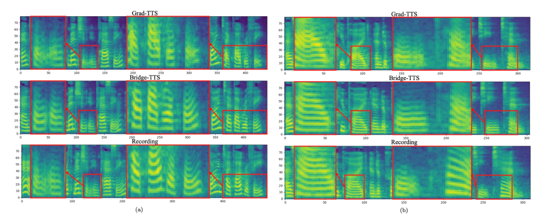 以下是 Bridge-TTS 与基于扩散模型方法的生成效果示例,更多生成样本对比可访问项目网站:https://bridge-tts.github.io/