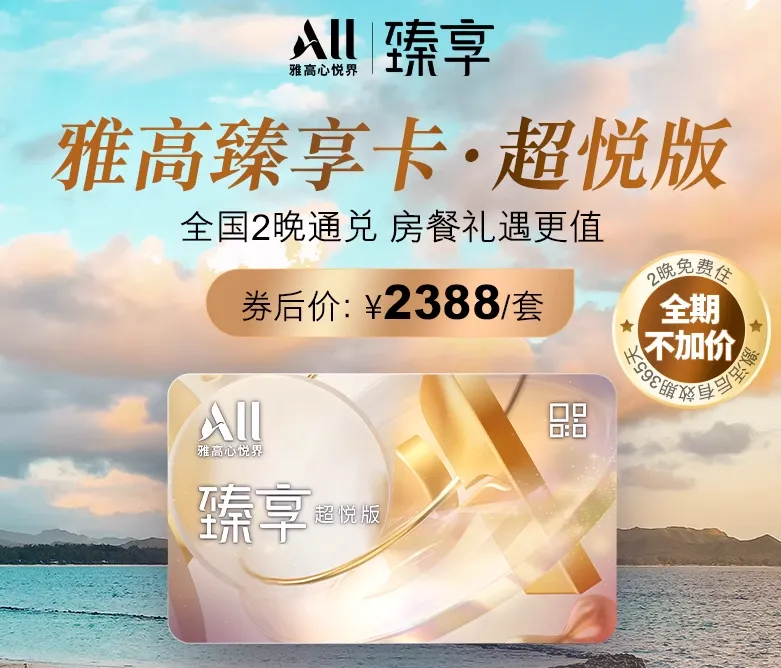但不管升级雅高金卡还是白金卡,都建议先买臻享卡·超悦版,不仅券后2388元/套,每张激活还额外送1000积分。