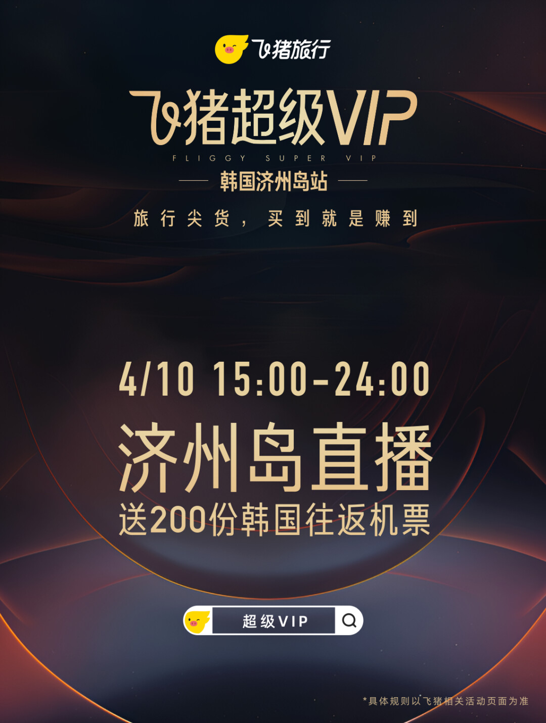 飞猪今天上线了超级VIP济州岛专题活动,淘宝那边给了1599-80元的红包,仅限淘宝端使用并支付。