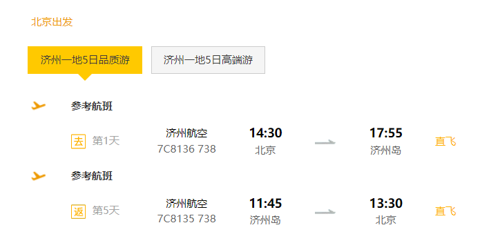 北京出发还有更轻松的5天4晚休闲半自助游,2399元起,全程安排济州岛五花特二酒店,5月部分日期出发不加价。