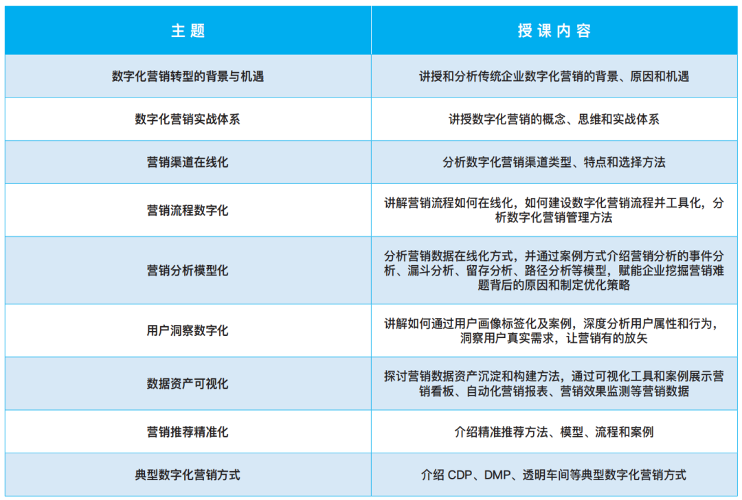 首先了解汽车企业数字化营销转型的背景与机遇,通过树立数字化营销思维,理解数字化营销实战体系,掌握汽车企业数字驱动营销增长、数字化营销实战方法,从而通过数字化营销工具、案例练习与解析,提升实战能力。