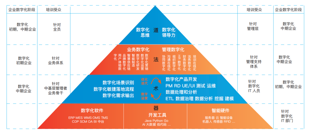 培训方案:面向业务人员,进行数字化思维和工具培训,学习业务建模、数据建模、产品建模等技能。