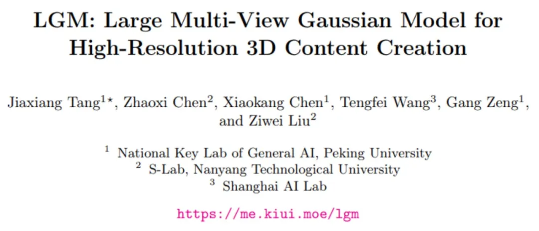 论文标题:LGM: Large Multi-View Gaussian Model for High-Resolution 3D Content Creation