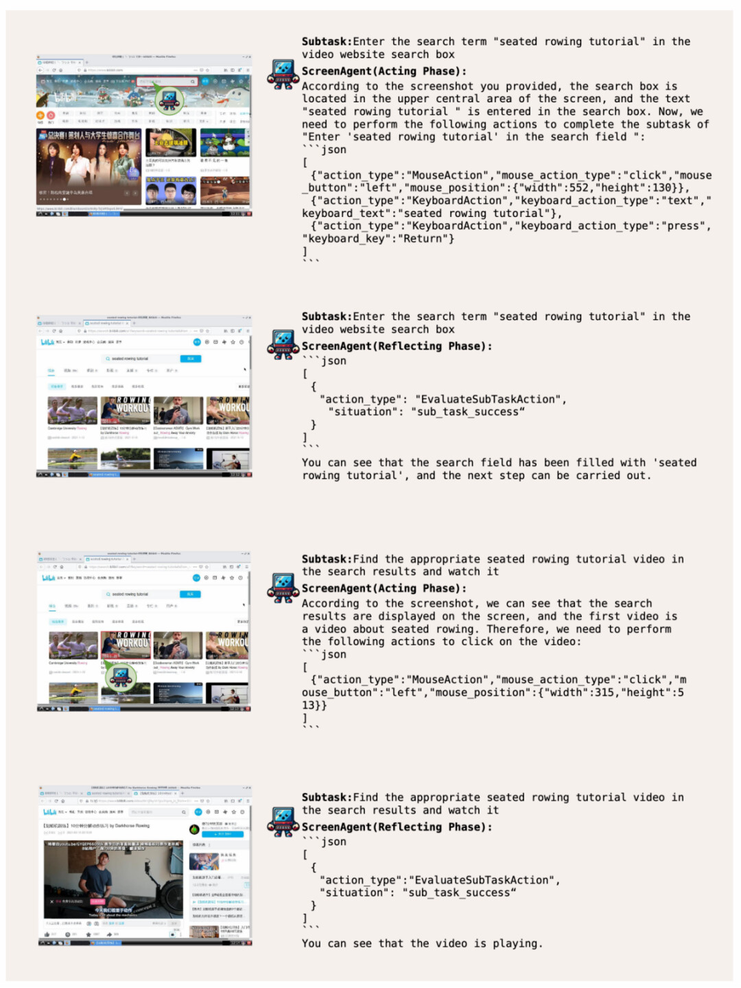 ScreenAgent 根据用户文本描述上网查找并播放指定的视频: