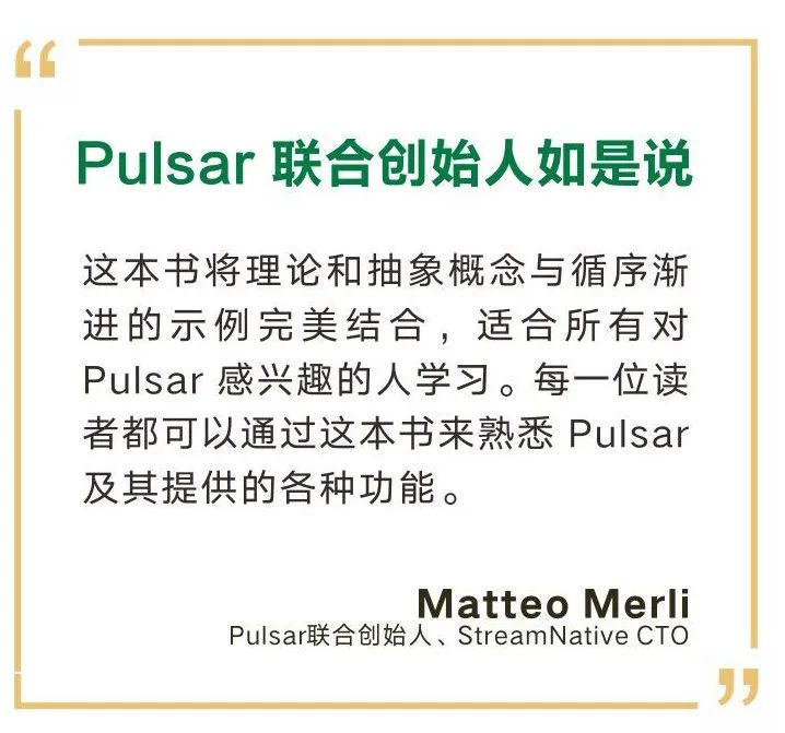 原文标题:Pulsar 联合创始人 Matteo Merli 作序推荐,写给 Pulsar 学习者的"避坑指南"