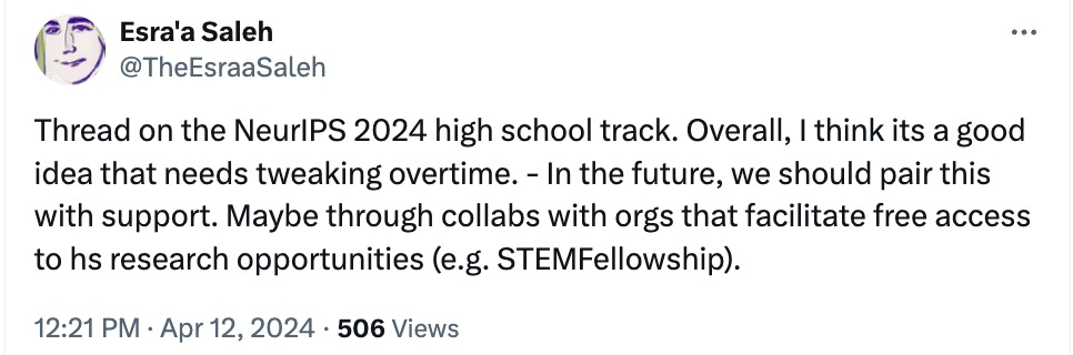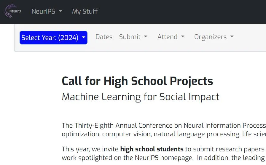 https://neurips.cc/Conferences/2024/CallforHighSchoolProjects