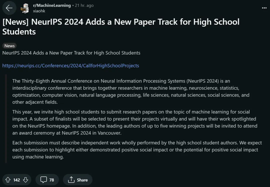 现在 NeuIPS 2024 的「高中生论文赛道」来了,仿佛是在侧面给众多大佬一个背刺。