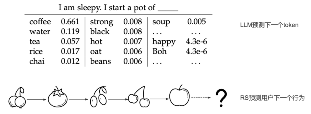 图2:大模型预测下一个token跟推荐系统预测下一个用户行为是类似的