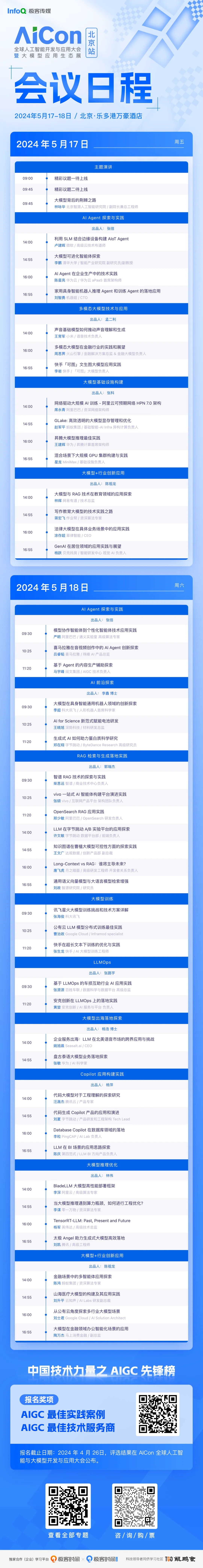 目前,AICon 大会议程已经上线,并将持续更新,感兴趣的同学请锁定大会官网(https://aicon.infoq.cn/2024/beijing/schedule)。