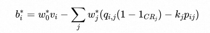 相比于第一代,规划求解类(LP)算法直接面向目标最大化优问题来进行求解。可基于前一天的参竞流量来预测当前未来流量集合,从而求解出价参数。自动出价问题根据当前已投放的数据变成新的子问题,因此可多次持续的用该方法进行求解,即Online LP[3][4]。这类方法依赖对未来参竞流量的精准预估,因此在实际场景落地时需要在未来流量的质和量的预测上做较多的工作。