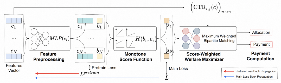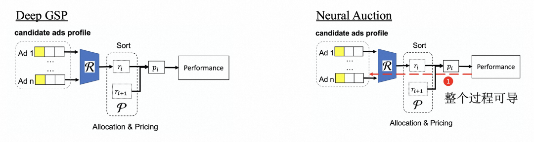 随着深度学习&强化学习的蓬勃发展,大家开始探索将深度学习/强化学习引入到拍卖机制设计中,学术界典型的工作包括RegretNet[26]、RDM[41]等,阿里妈妈结合工业界的场景特点,先后设计出Deep GSP[31]、Neural Auction[32]、Two-Stage Auction[33]等机制,这些机制都借助了深度网络强大的学习能力,提升拍卖机制的优化效果。