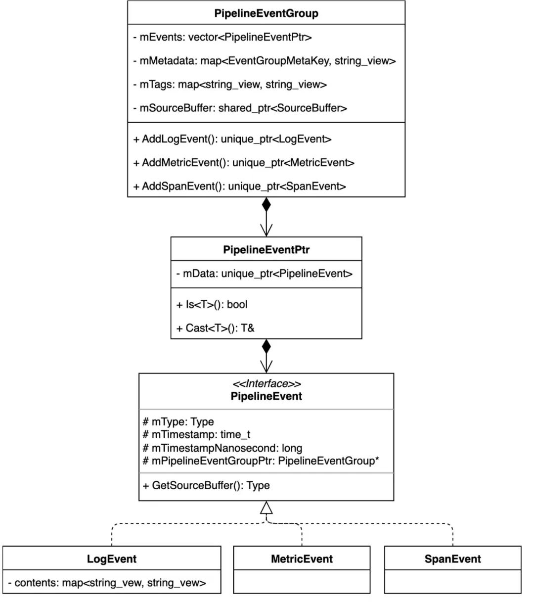 mMetadata:EventGroup共享的元信息,例如机器ip、容器名称、日志路径等;仅在生成EventGroup时可写,且保存于内存中,不用于最终输出;