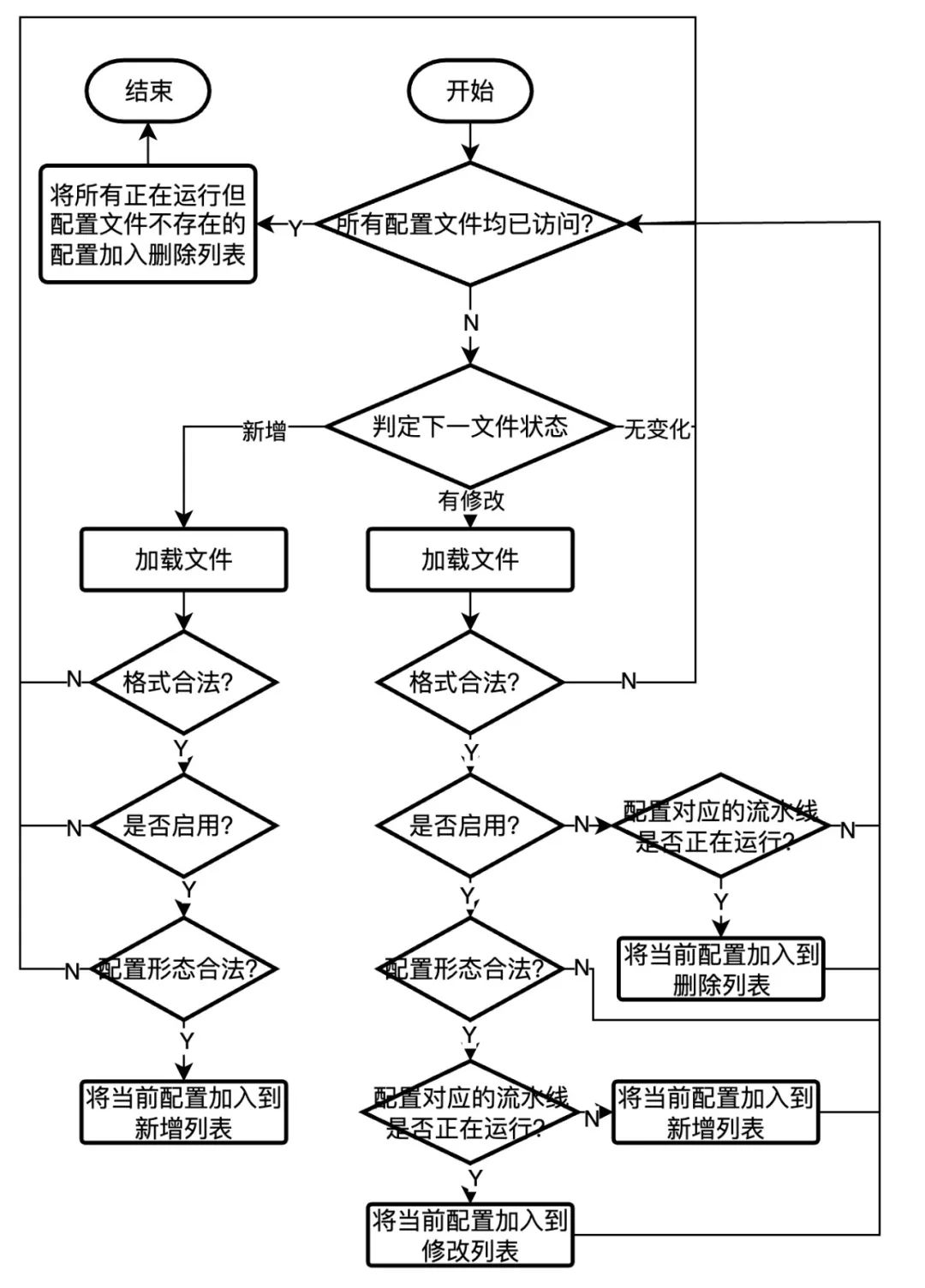 可以看到,采用上述两步走的配置热加载方法,可以最大程度提升流水线的容错能力,即仅当采集配置对应的流水线完全合法时才会进行加载。对于正在运行的流水线,如果因为某些原因导致对应的采集配置文件非法,则目前正在运行的流水线仍会继续正常运行,不会被非法的采集配置影响。