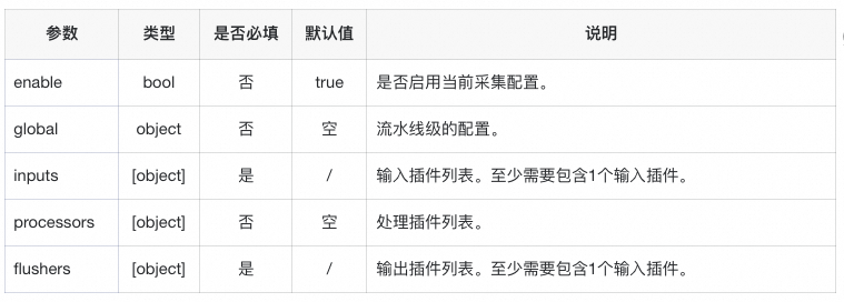 其中,inputs、processors、aggregators和flushers中可包含任意数量的插件,包括C++插件和Golang插件。