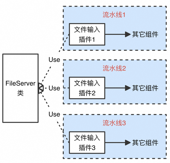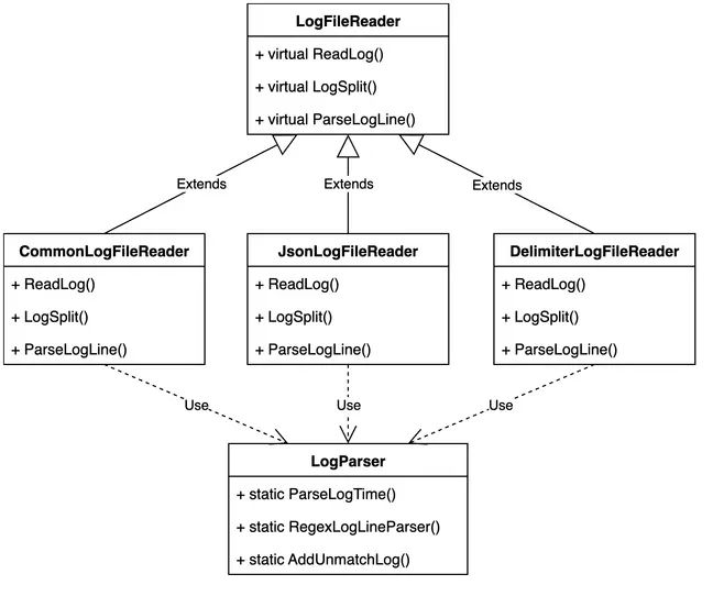 显然,将日志文件读取和日志解析的能力统一放到一个类中是一个不太合理的设计,完全缺乏可扩展性。为此,我们需要将日志切分(LogSplit函数)和日志解析(ParseLogLine函数)的能力从LogFileReader类中剥离开来,同时和LogParser类中相关的函数进行重新组合,从而形成多个独立的处理插件。