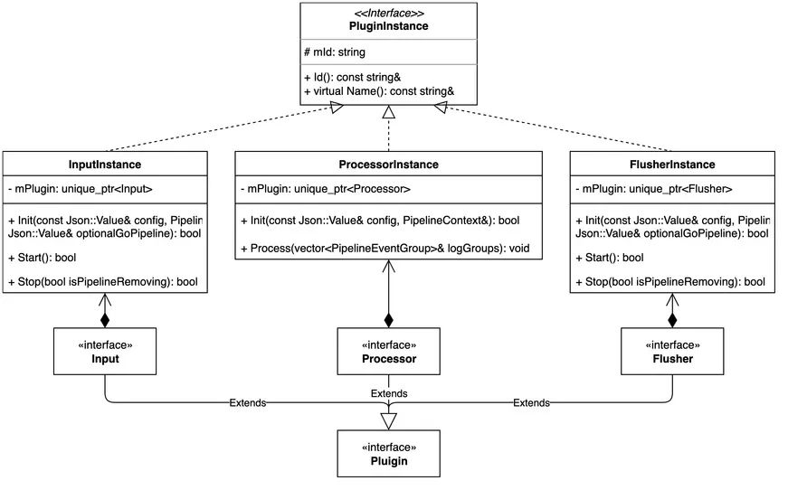 其中,成员变量mContext指向插件所属流水线(Pipeline)的上下文信息(具体含义将在下文介绍),成员函数Name()返回该插件的名字。