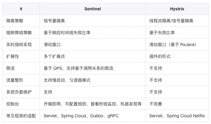 2、Hystrix 和 Sentinel 都可以实现服务容错,它们之间有什么区别?在实际应用中如何选择?