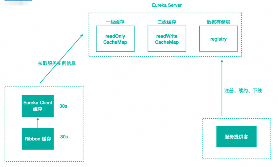Eureka之所以设计⼆级缓存机制,也是为了提⾼ Eureka Server 的响应速度,缺点是缓存会导致 Client获取不到最新的服务实例信息,然后导致⽆法快速发现新的服务和已下线的服务。