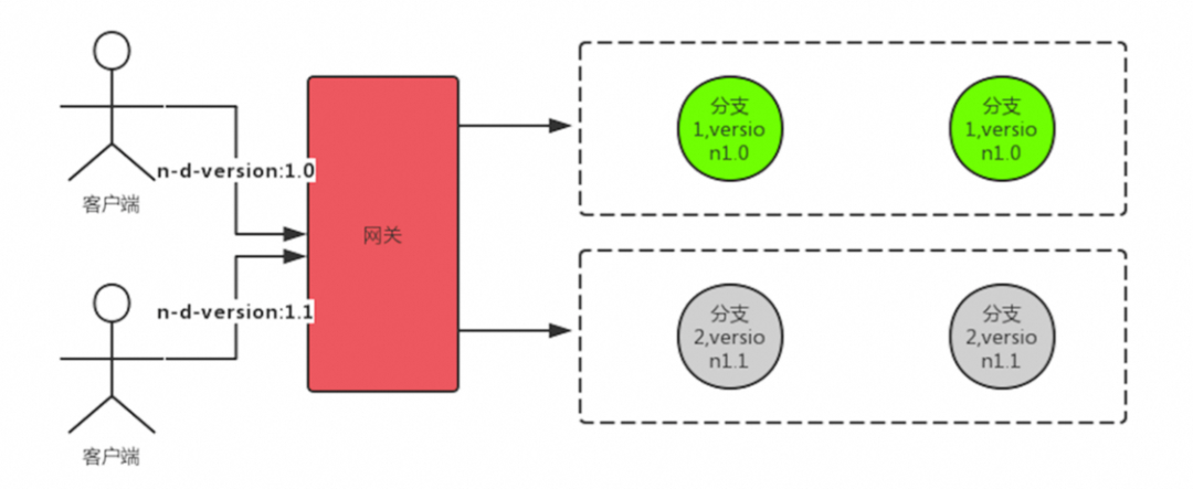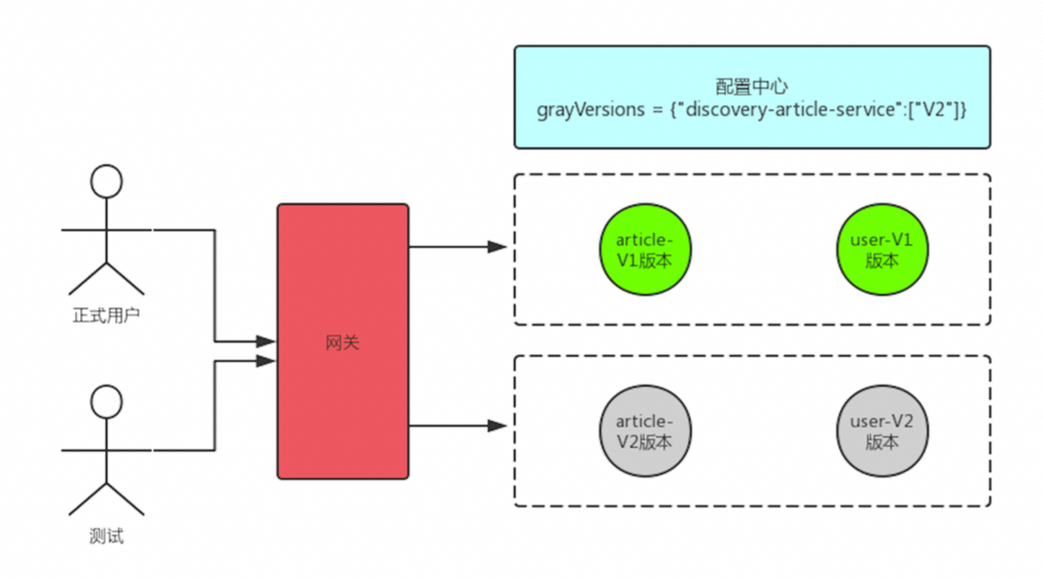部分机器中的版本进行升级,用户默认还是请求老的服务,通过版本来支持测试请求。