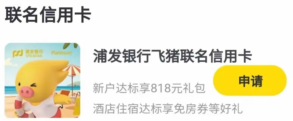 它就是浦发的飞猪联名卡,有兴趣的小伙伴可以在飞猪app - 我的 - 飞猪钱包中找到该卡的介绍和申请链接。