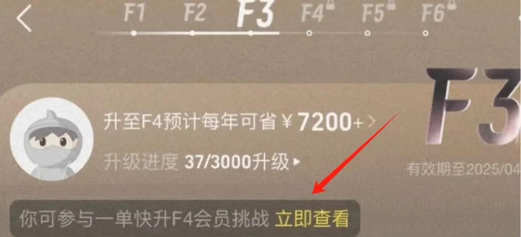 帅帅已经是几年的F4会员了,目前自动升级到了F5,但距离F6还是遥遥无期。