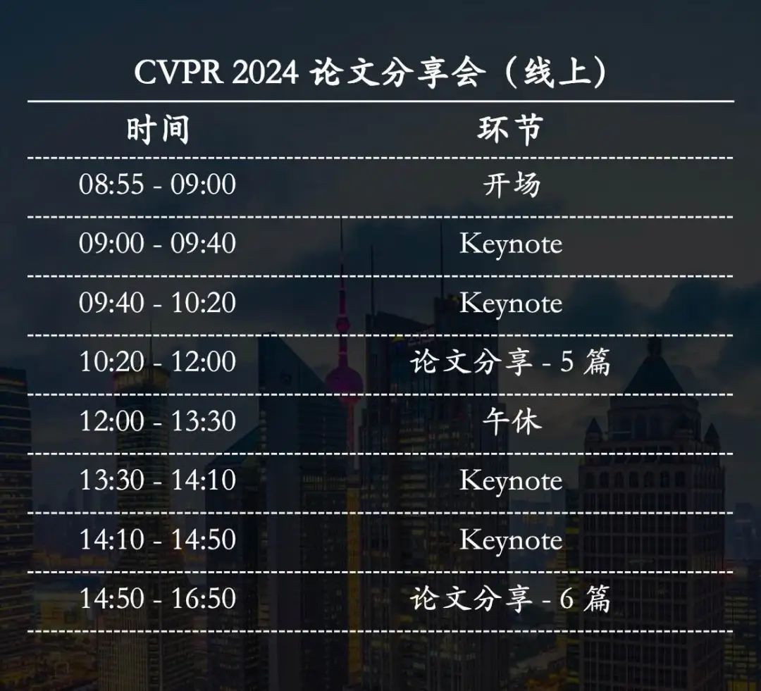 CVPR 论文分享会将设置 Keynote、 论文分享、企业招聘等环节,就业内关注的 CV 热门主题邀请顶级专家、论文作者与观众做学术交流。