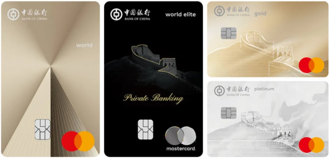 果不其然,昨日中行首发了4张万事达人民币卡。卡片等级从基础的金卡到私人银行卡,覆盖不同需求的用户。