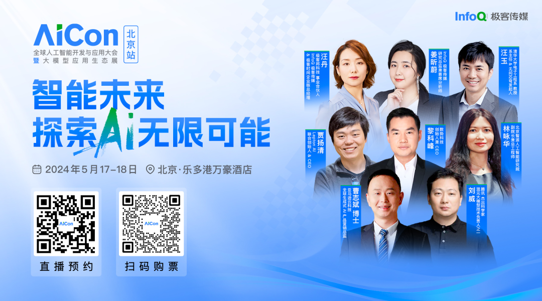 AICon 全球人工智能开发与应用大会 暨 大模型应用生态展将于 5 月 17 日正式开幕,本次大会主题为「智能未来,探索 AI 无限可能」。如您感兴趣,可点击「阅读原文」查看更多详情。