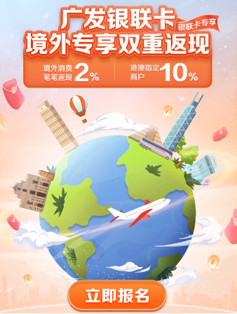 本周开始,广发银联卡境外(包括中国香港、中国澳门、中国台湾)消费笔笔返现2%也上线了~