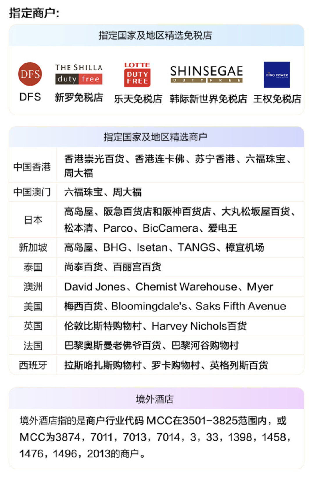 活动二:2024 年1月1日-12月31日期间,境外指定精选免税店、购物中心及酒店商户返现高达30%。