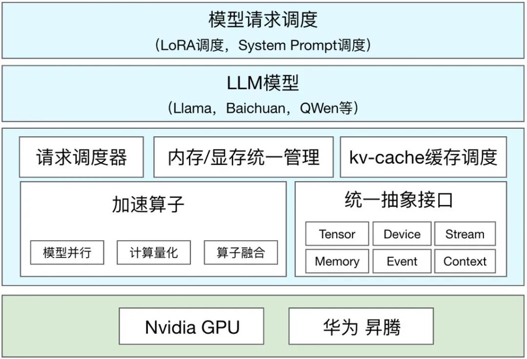 LLM 模型是基于统一抽象接口和加速算子库来支持的 LLM 模型。