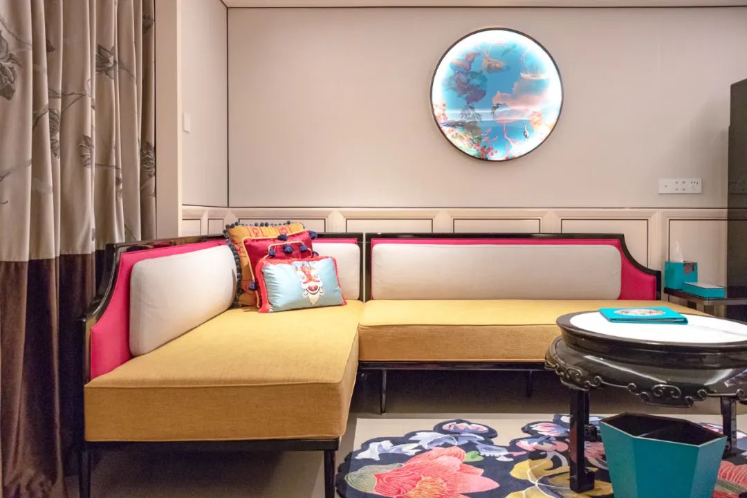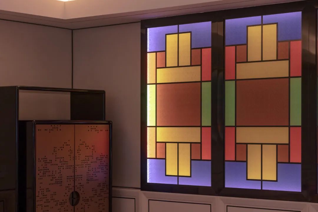 满洲窗、骑楼花砖及各种岭南文化等复古元素散落在现代房间的各个角落,风格独具又不显突兀。