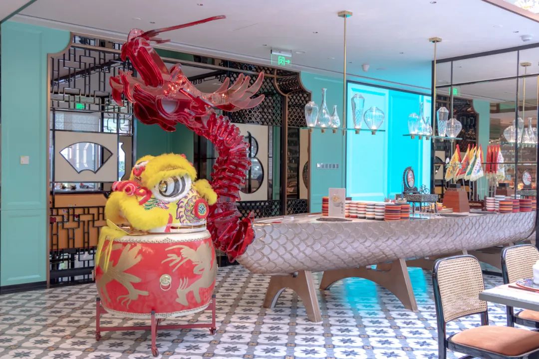 以龙舟、舞狮、满洲窗等文化记忆符号装饰整个餐厅,提供自助早餐、午餐、下午茶及晚餐。