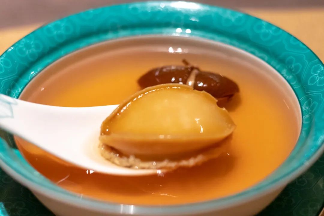 陈皮鲍鱼汤(汤品):入口润喉,汤头鲜甜,鲍鱼有韧劲但不难咬开。