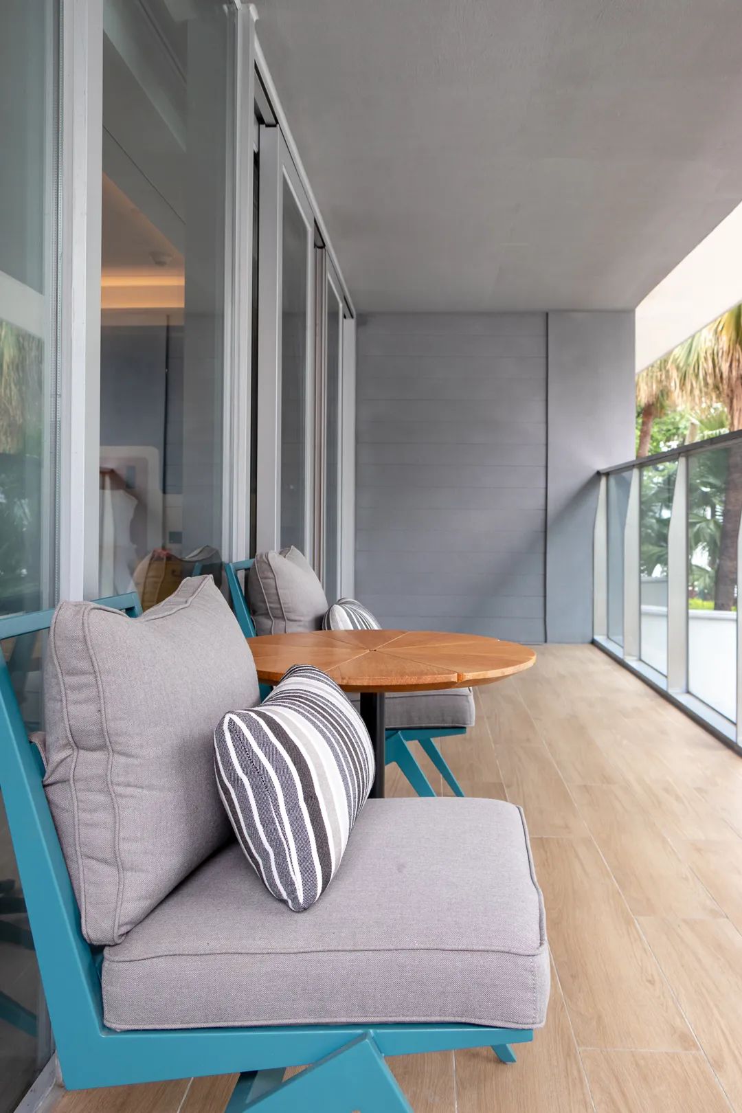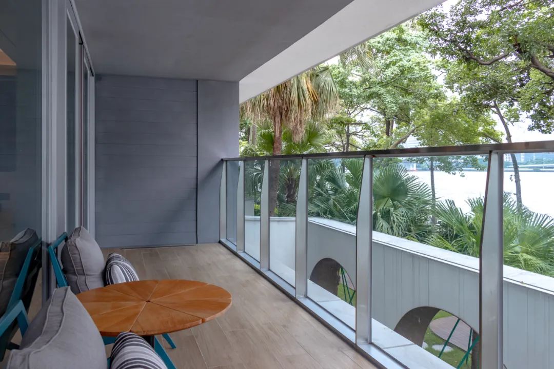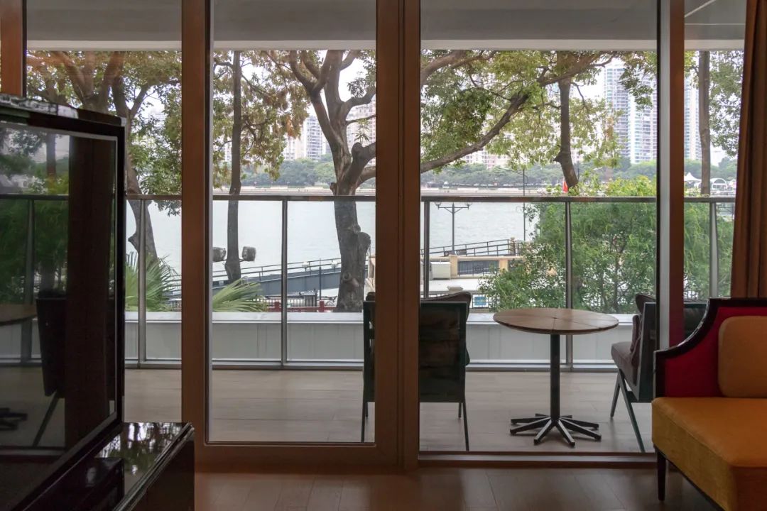 阳台配备舒适靠椅和小圆桌,空间依然宽敞有余。我在阳台稍作驻足,这里视野开阔,可直面珠江和广州塔,临江但不吵闹。
