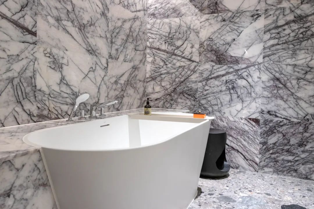 浴室面积十分慷慨,采用大理石进行装潢,干湿区分离。使用之后有个小提议,如果能提供一个泡澡小枕头就更完美了。