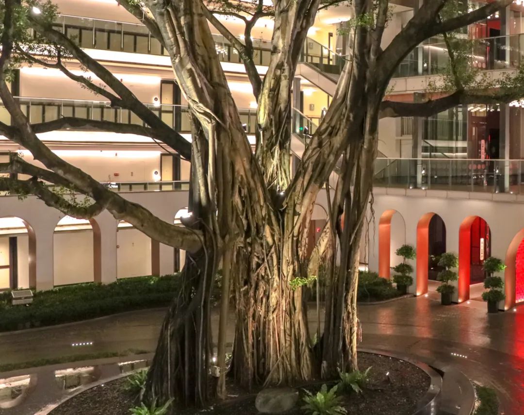一棵参天的榕树占据着酒店最核心之处,恍惚间从繁华都市穿越回旧时的广州城。