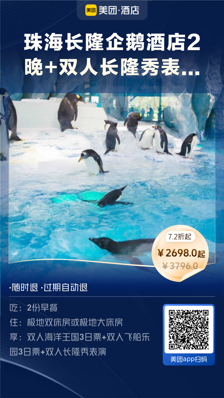 珠海长隆企鹅酒店2晚+双人长隆秀表演+双人海洋王国3日票+双人宇宙飞船3日票 - 2698元