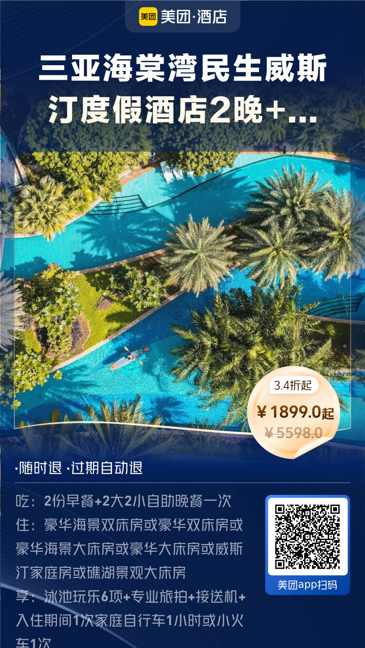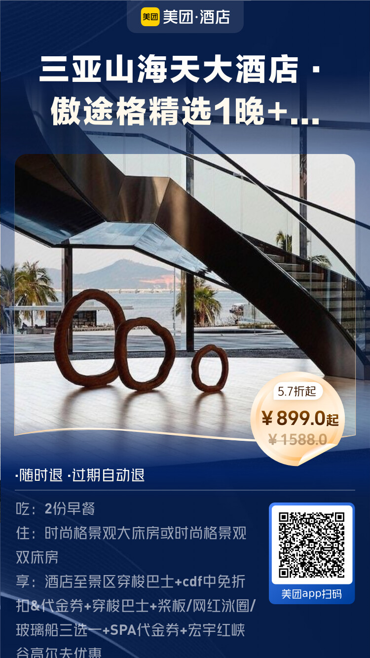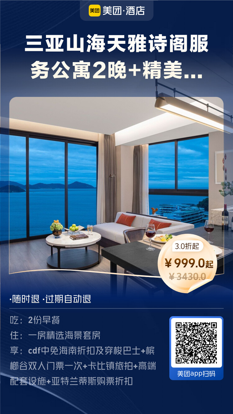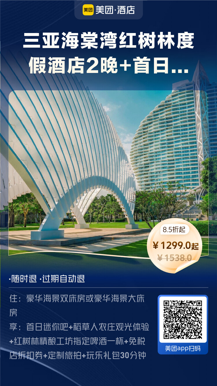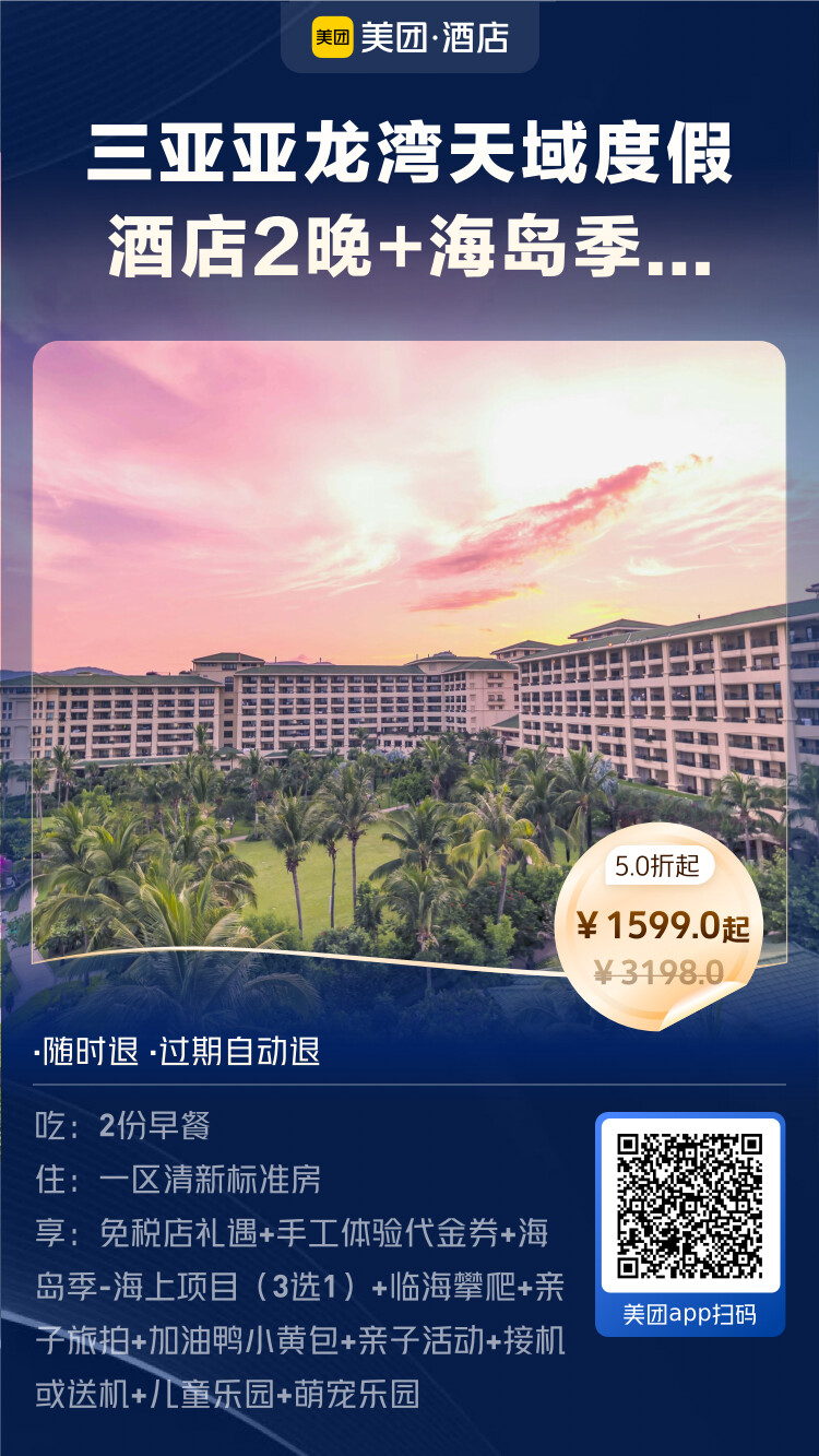 美团酒店海岛季王牌直播间,开播时间:6月1日10:00-24:00。即将开启,小伙伴们可以准备起来了。可以说,美团的这波海岛酒店,价格是这两年最给力的一次,错过这波真的要后悔。立即扫下方海报进入直播间: