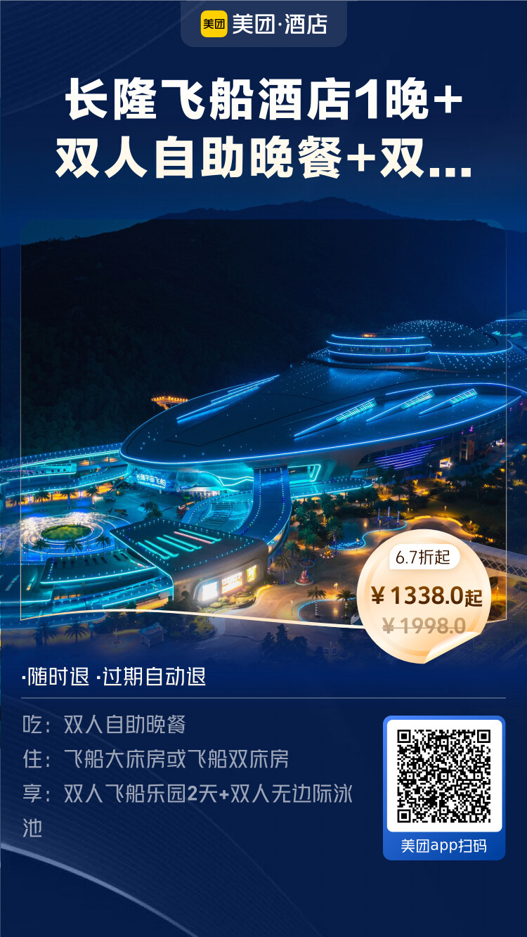 珠海长隆飞船酒店1晚+双人无边际泳池+双人飞船乐园2天+双人自助晚餐 - 1338元