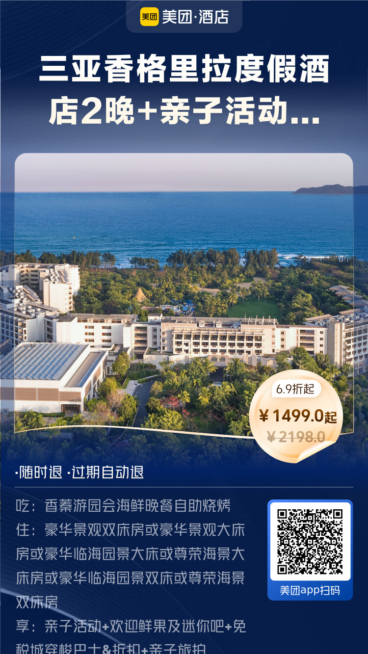 三亚香格里拉度假酒店2晚+2大1小香蓁游园会海鲜自助晚餐+免税店折扣+免税店穿梭巴士+畅玩香蓁游园会+亲子活动+旅拍,1499元
