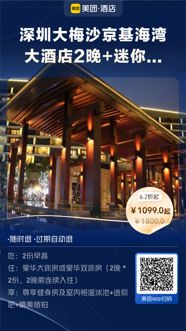 深圳大梅沙京基海湾大酒店2晚+迷你吧+精美旅拍+尊享健身房及室内恒温泳池 - 1099元