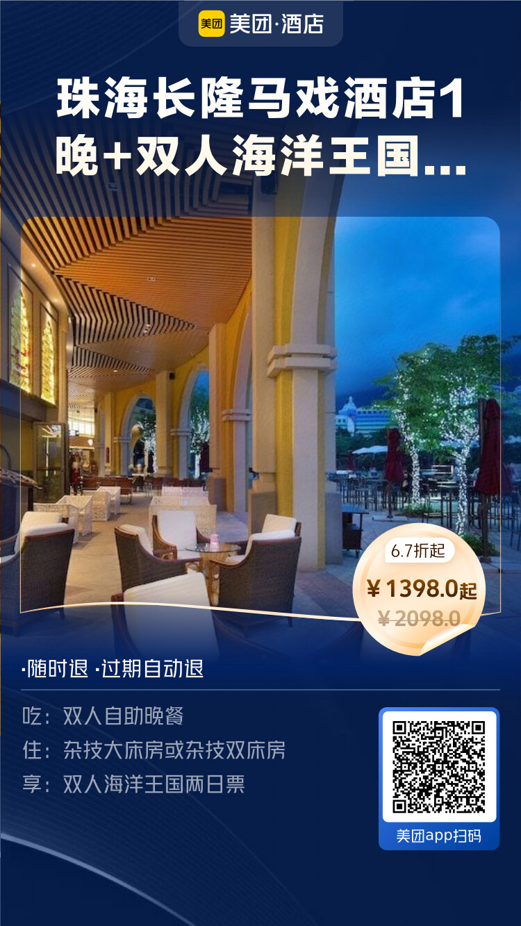 珠海长隆马戏酒店1晚+双人海洋王国两日票+双人自助晚餐 - 1398元