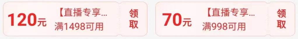 常规券:20无门槛、满598-50、满998-70、满1499-120