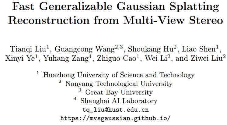 论文名称:Fast Generalizable Gaussian Splatting Reconstruction from Multi-View Stereo