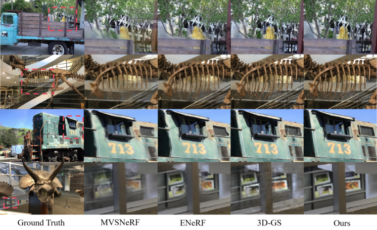 3)可泛化的 NeRF 方法表明,对特定场景进行进一步微调可以显著改善合成视图的质量,但这需要耗费大量时间进行优化。尽管 3D-GS 比 NeRF 更快,但仍然需要较长的时间。因此,设计一种基于可泛化模型进行快速逐场景优化的方法是一个非常有前景的研究方向。